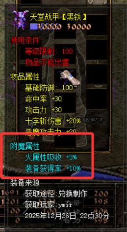 火神附魔术(初级) 火神附魔术(中级) 火神附魔术(高级) 注意:武器附魔 最高到 30% (升级装备附魔属性消失) 武器附魔术如下爆率: 暗之鬼眼树根 : 火神附魔术(初级) , 火神附魔术(中级) , 火神附魔术(高级) 暗之赤炼树妖 : 血神附魔术(初级) , 血神附魔术(中级) , 血神附魔术(高级) 暗之青魇树魔 : 雷神附魔术(初级) , 雷神附魔术(中级) , 雷神附魔术(高级)